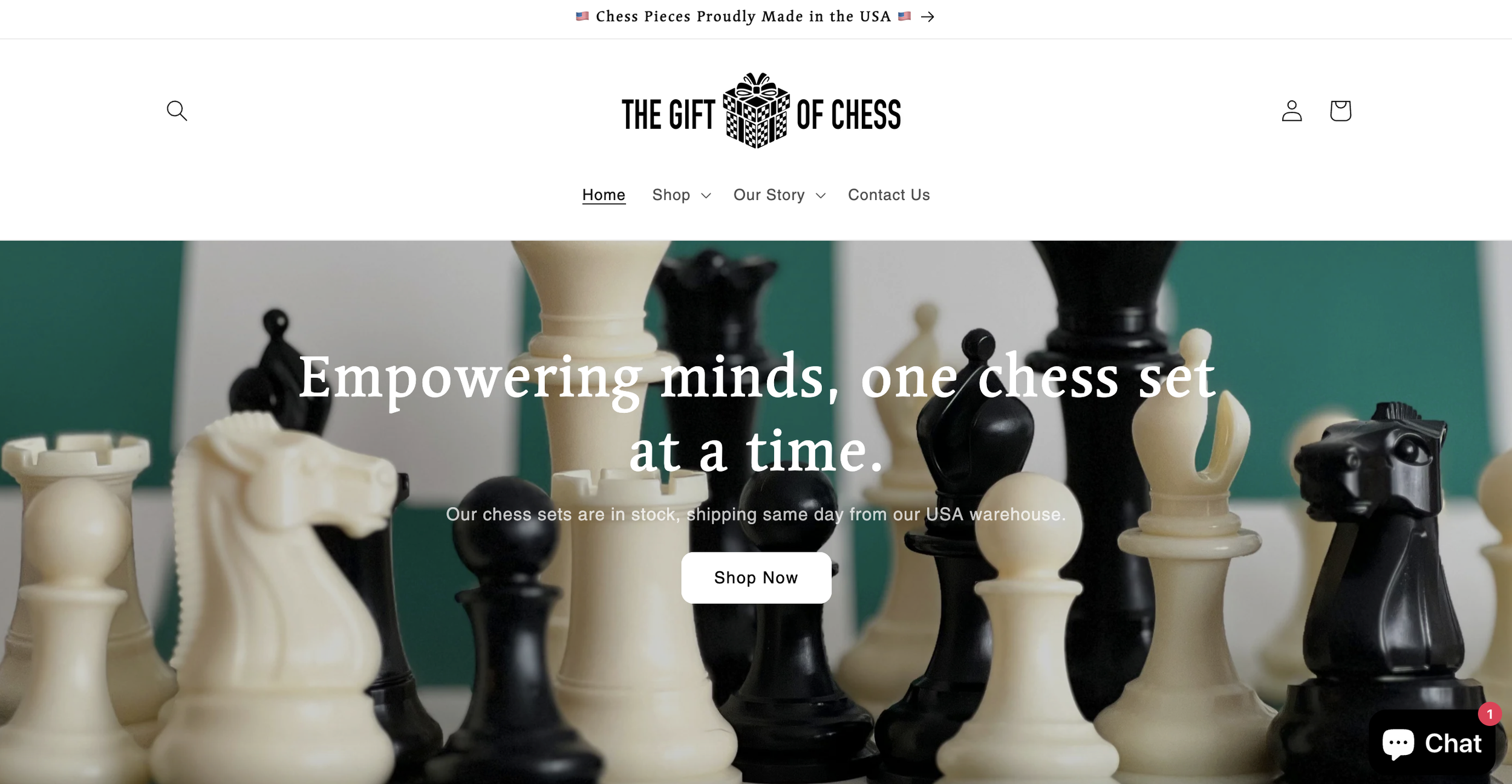 An ecommerce shop built on Shopify with with Walmart, eBay and Amazon marketplace integrations for a domestic chess set manufacturer.