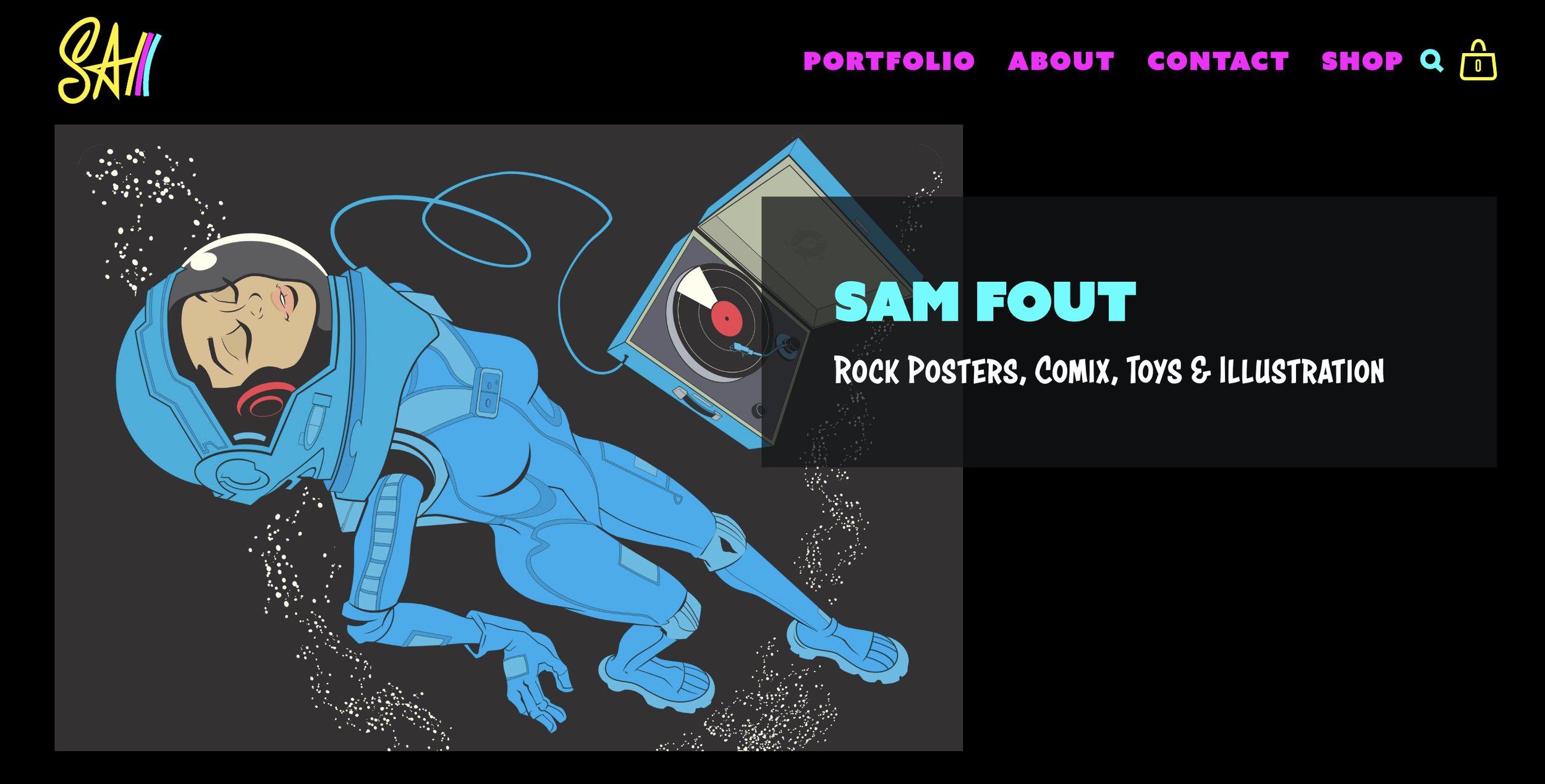 A project portfolio site with an ecommerce shop built on Squarespace for artist Sam Fout.