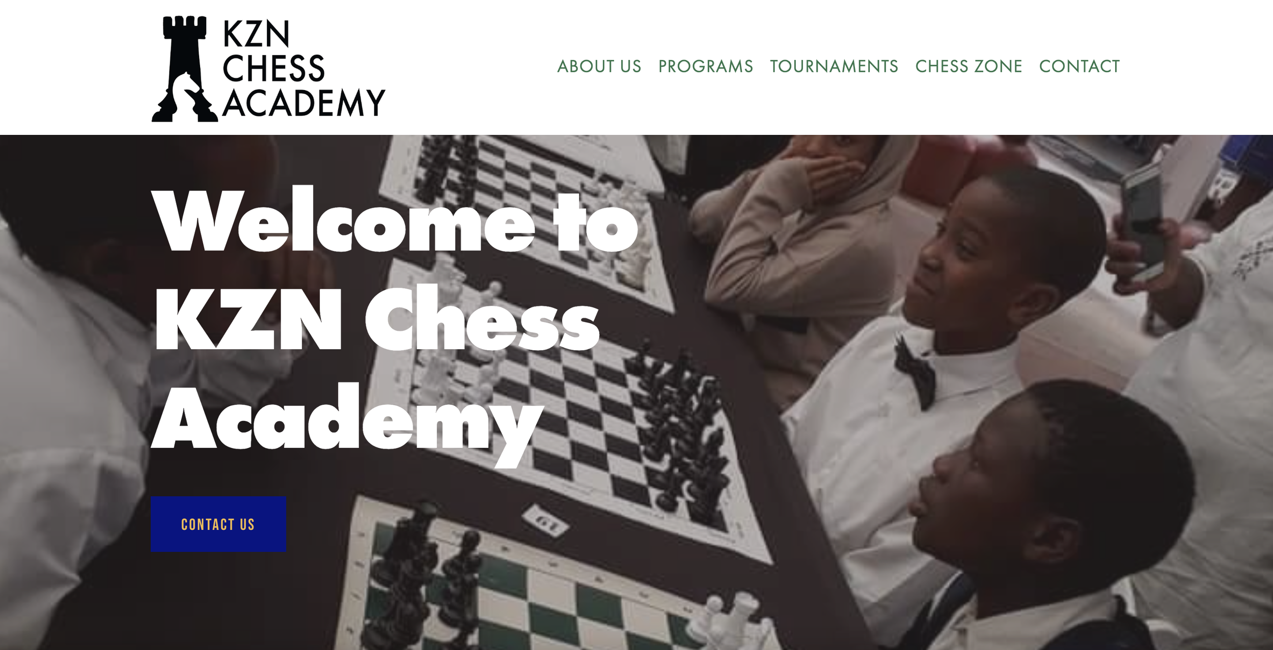 A website built on Squarespace for a South African chess academy, featuring program info, a blog and an events calendar.